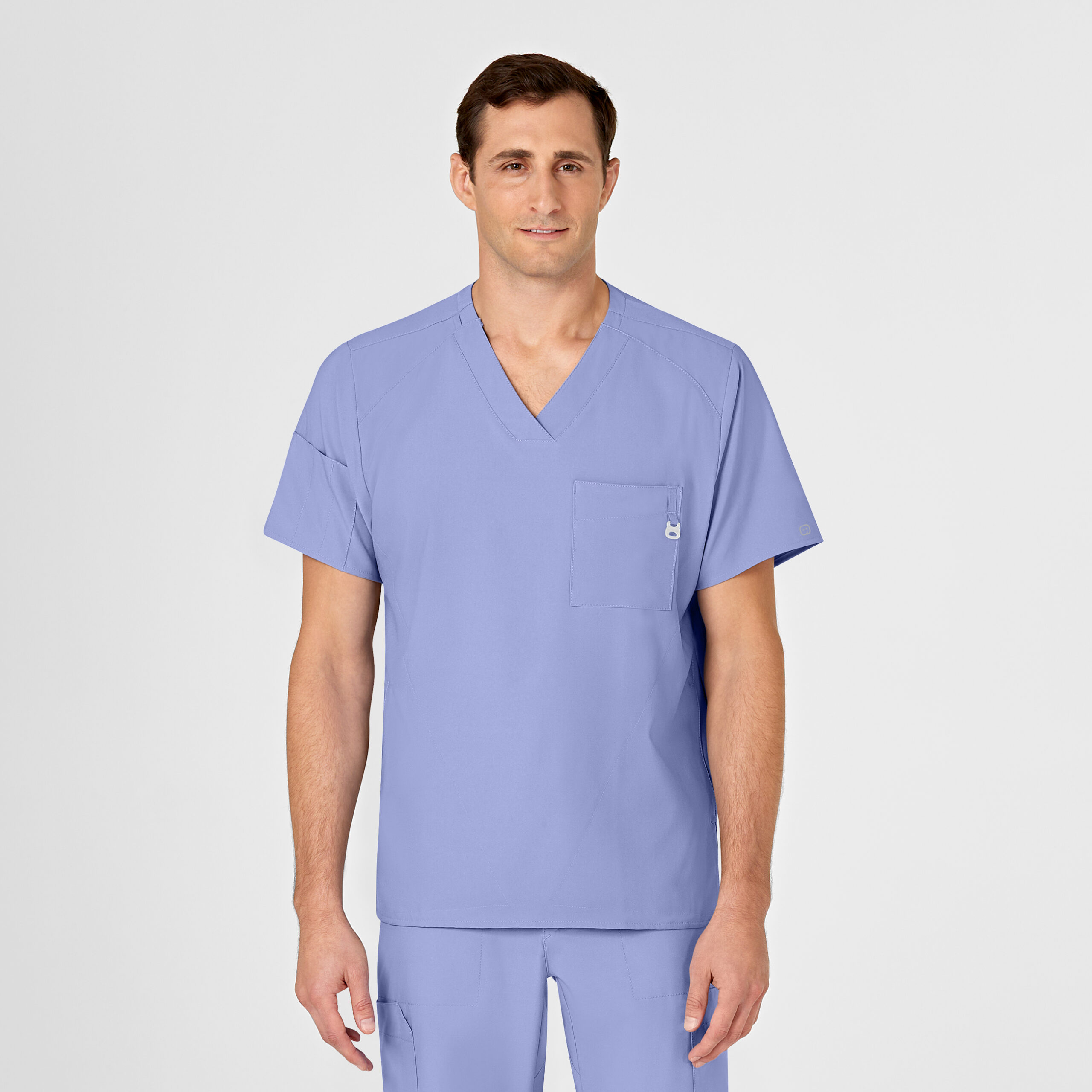 Men’s modern fit, Banded v-neckline, Short sleeves with pen pockets at right, Slanted front shoulder yokes with badge loop, Single chest patch pocket with accessory loop and signature silicone d-ring, Two side seam slip pockets, Side vents at hem, 100% polyester 4-way stretch, moisture wicking microfiber, Easy care, Avoids fading and shrinkage, Center back length: 29″ in Medium