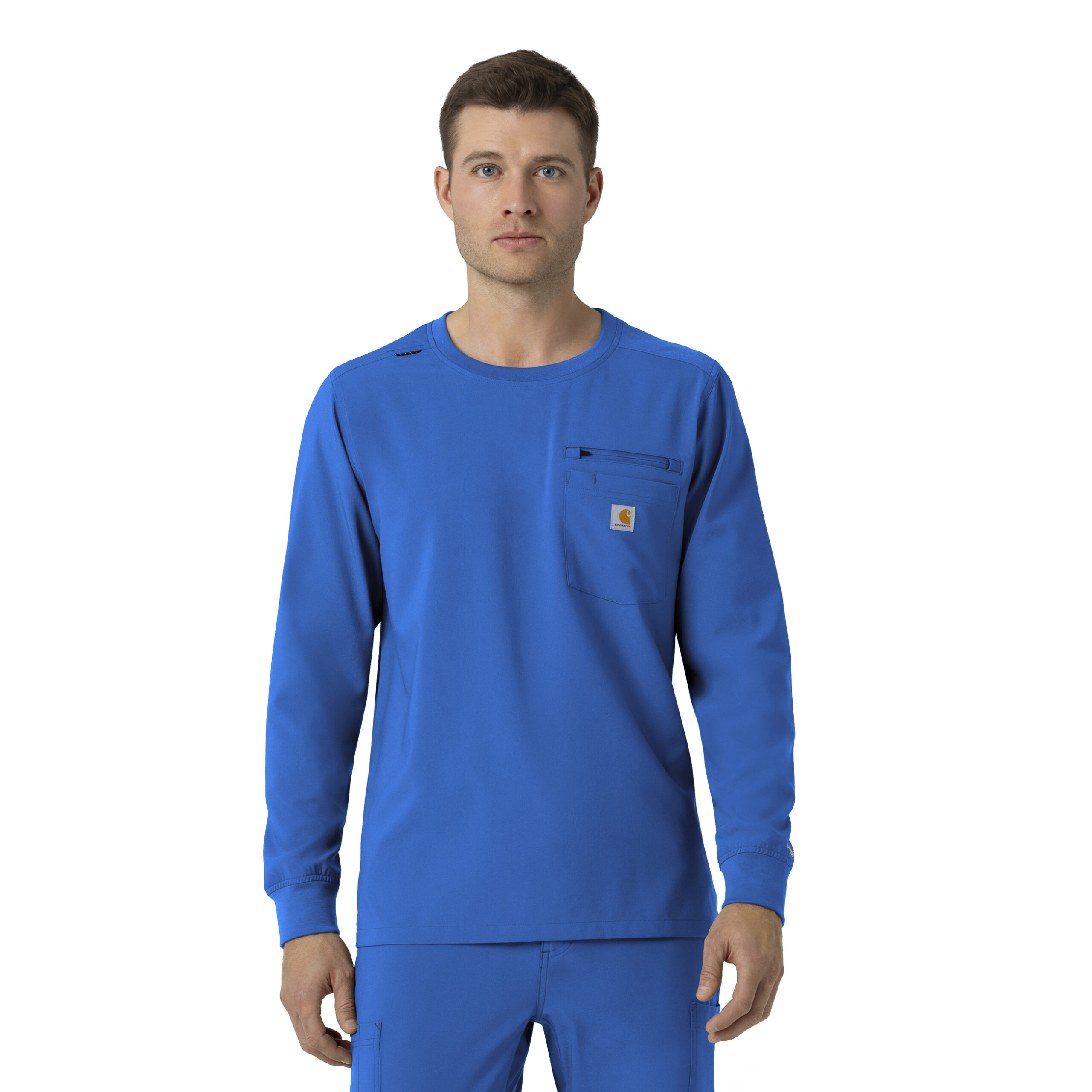 You need a scrub top you can count on, and this men’s Carhartt long sleeve top is designed to be that piece. It’s built for repeated wear, so you know it will hold up through many shifts. The long sleeves give you extra warmth and coverage. This scrub top has plenty of pockets to keep your things organized. A pen slot keeps your pen handy, and the badge loop lets you show your ID clearly. The knit collar and cuffs add comfort and give it a relaxed style. It’s made to be comfortable for long hours. You can move easily in it. The strong fabric means it will last.