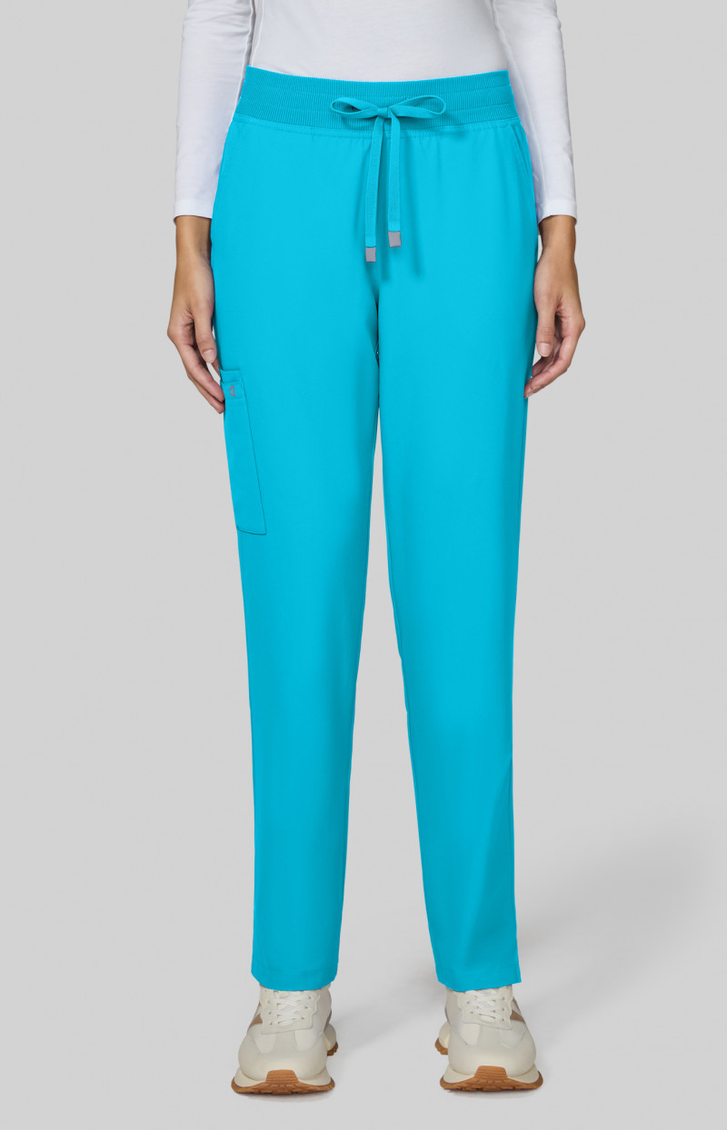 Discover the cure for the common scrub from Cureology! The Atria pant is the perfect everyday pant with lots of pockets for all your stuff. Modern Classic fit. Drawstring elastic waist, 7 pockets for all your gear, Side slits at hem, 100% polyester stretch twill