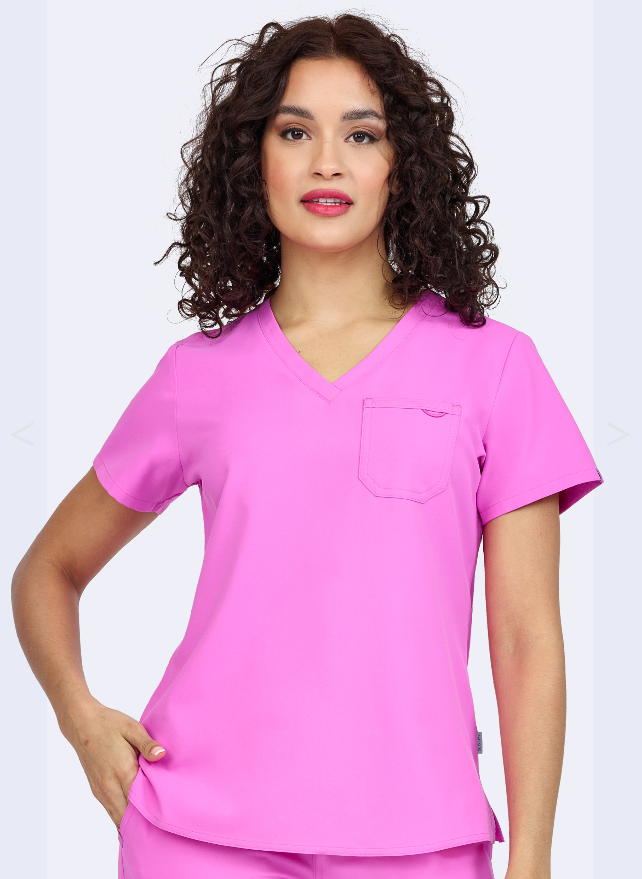 100% Polyester, V-Neck, Tuck in or wear it out , elastic bungee loop on chest pocket