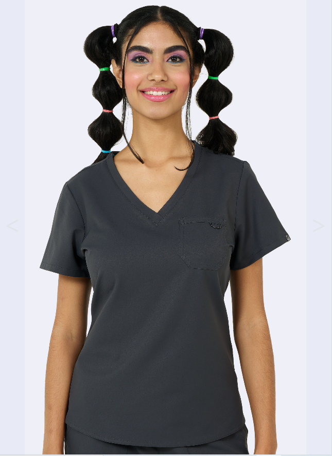 100% Polyester, V-Neck, Tuck in or wear it out , elastic bungee loop on chest pocket