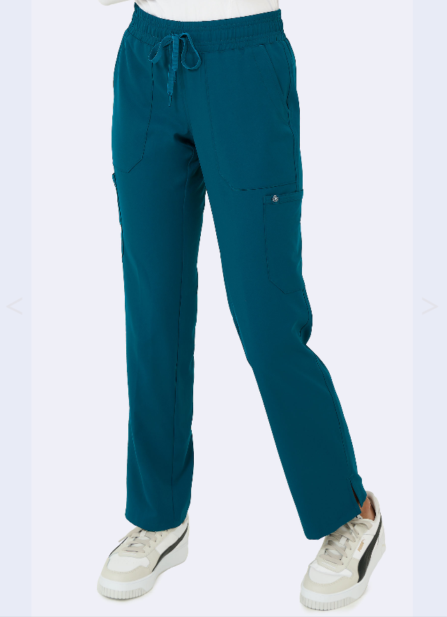 100% Polyester, Full elastic shirred waistband with front drawstring, 2 front pockets, 2 cargo pockets, elastic bungee loop on right cargo pocket, back patch pocket