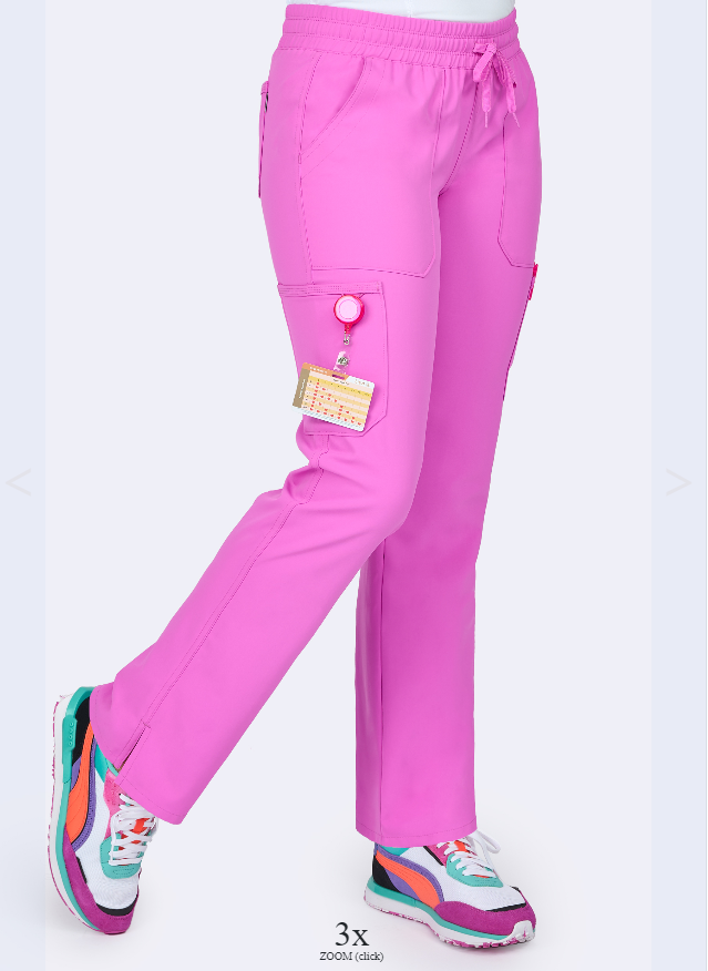 100% Polyester, Full elastic shirred waistband with front drawstring, 2 front pockets, 2 cargo pockets, elastic bungee loop on right cargo pocket, back patch pocket