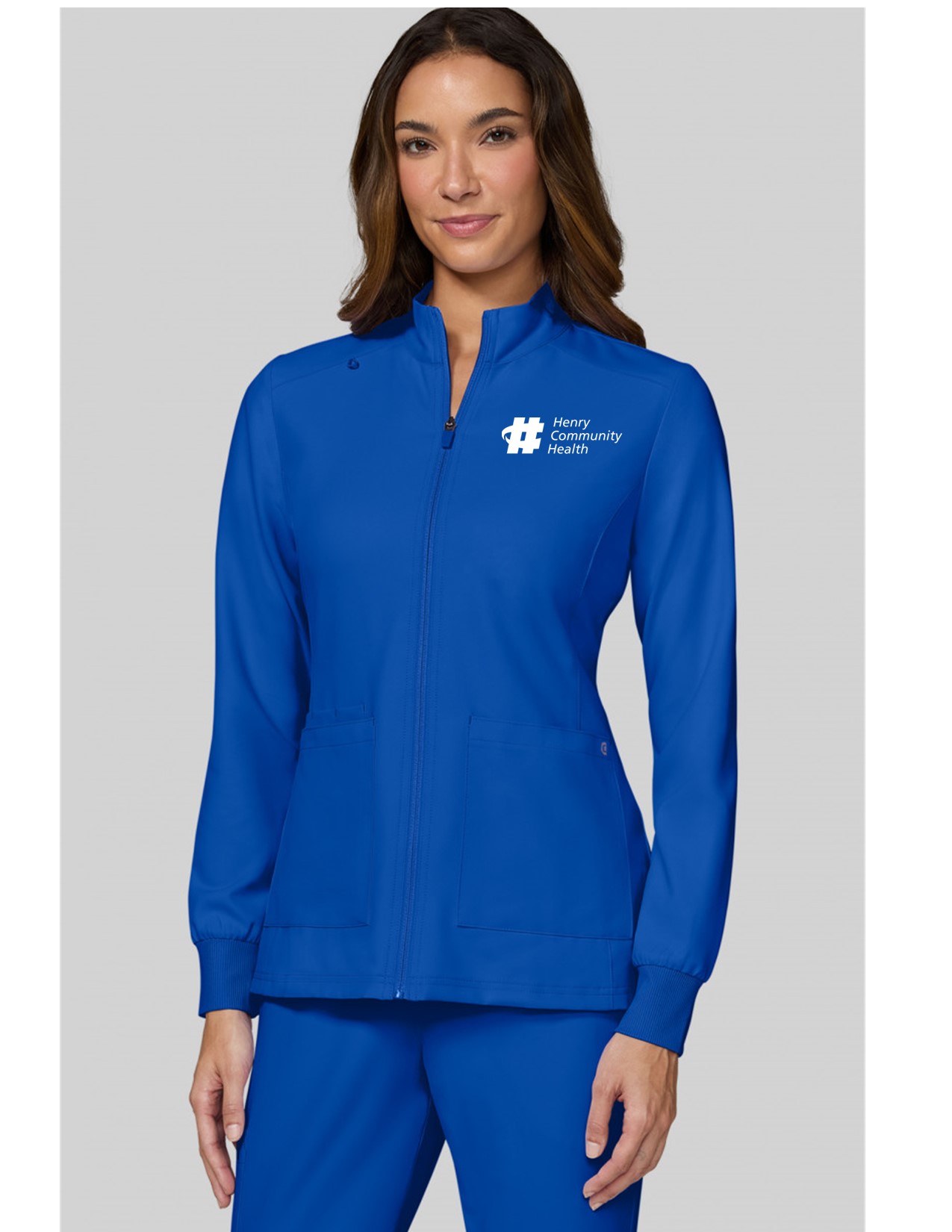 Warm up in this stylish, modern, super comfy women’s jacket. Contemporary fit. Zipper front, 2 front pockets, 3 pen slots, Ribbed cuffs at sleeves, Length Size Small: 30 1/4″, 100% polyester stretch twill, Cureology Geneses Women’s 2-Pocket Jacket