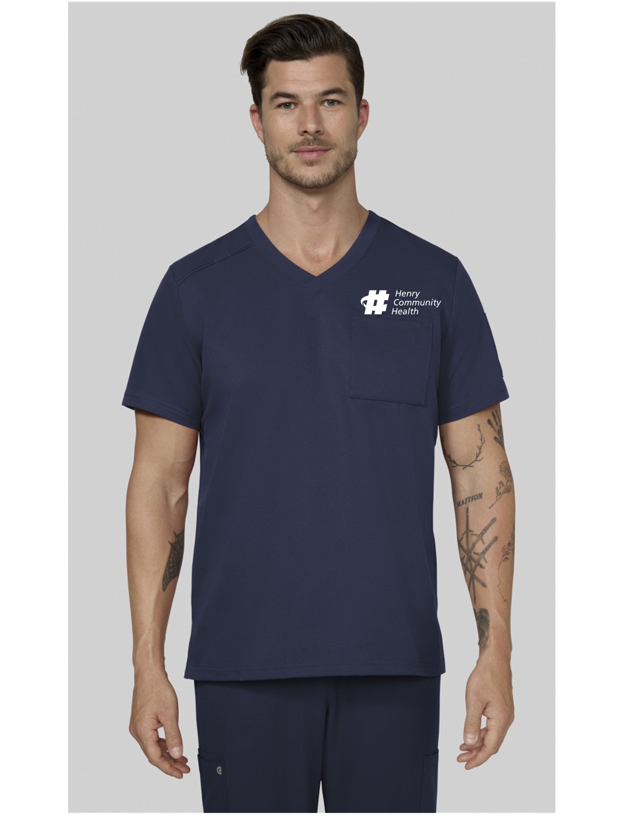 This everyday men’s top is the cure for the common scrub! Looks and feels amazing. Modern classic fit. Classic v-neck, Chest pocket, sleeve pocket, 3 pen slots, ID badge loop, Side slits, Looks great tucked in or out, Length Size Large: 30 1/4″, 100% polyester stretch twill, Cureology Arthro Men’s 2-Pocket V-Neck Scrub Top