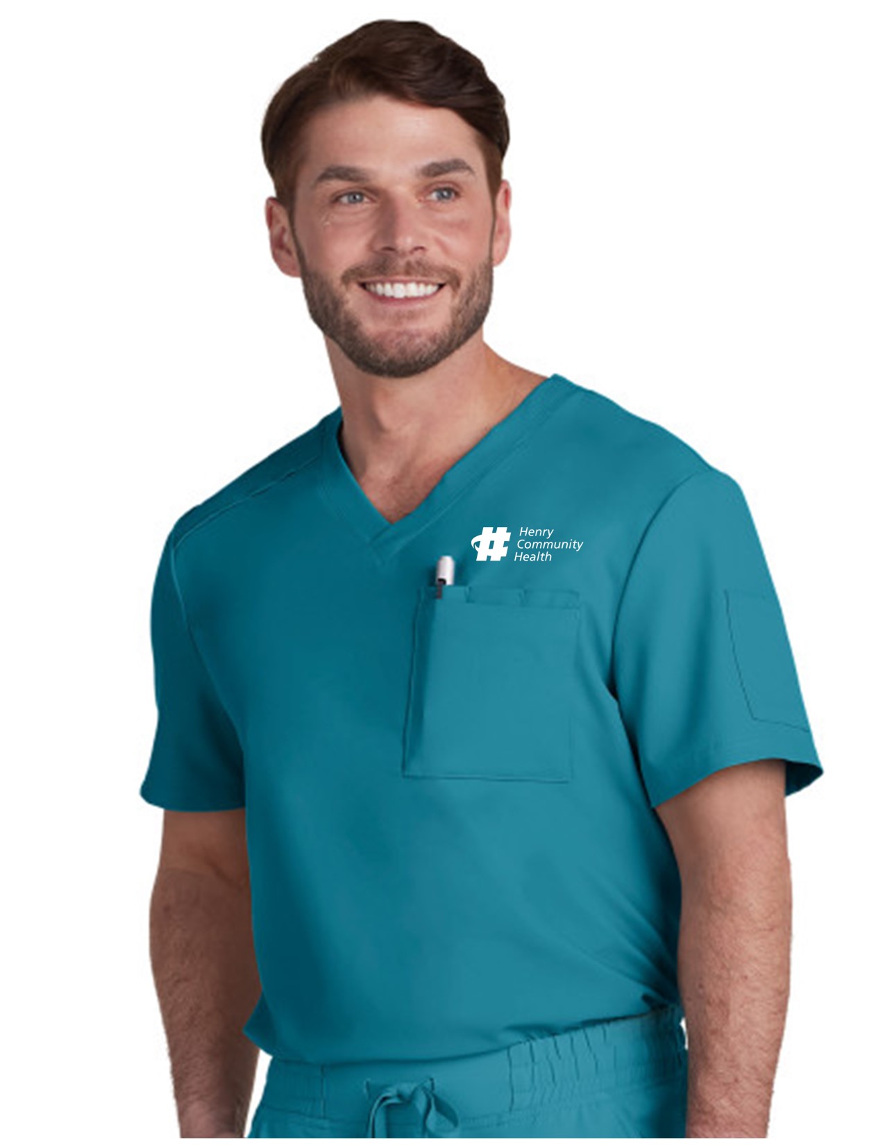 This everyday men’s top is the cure for the common scrub! Looks and feels amazing. Modern classic fit. Classic v-neck, Chest pocket, sleeve pocket, 3 pen slots, ID badge loop, Side slits, Looks great tucked in or out, Length Size Large: 30 1/4″, 100% polyester stretch twill, Cureology Arthro Men’s 2-Pocket V-Neck Scrub Top