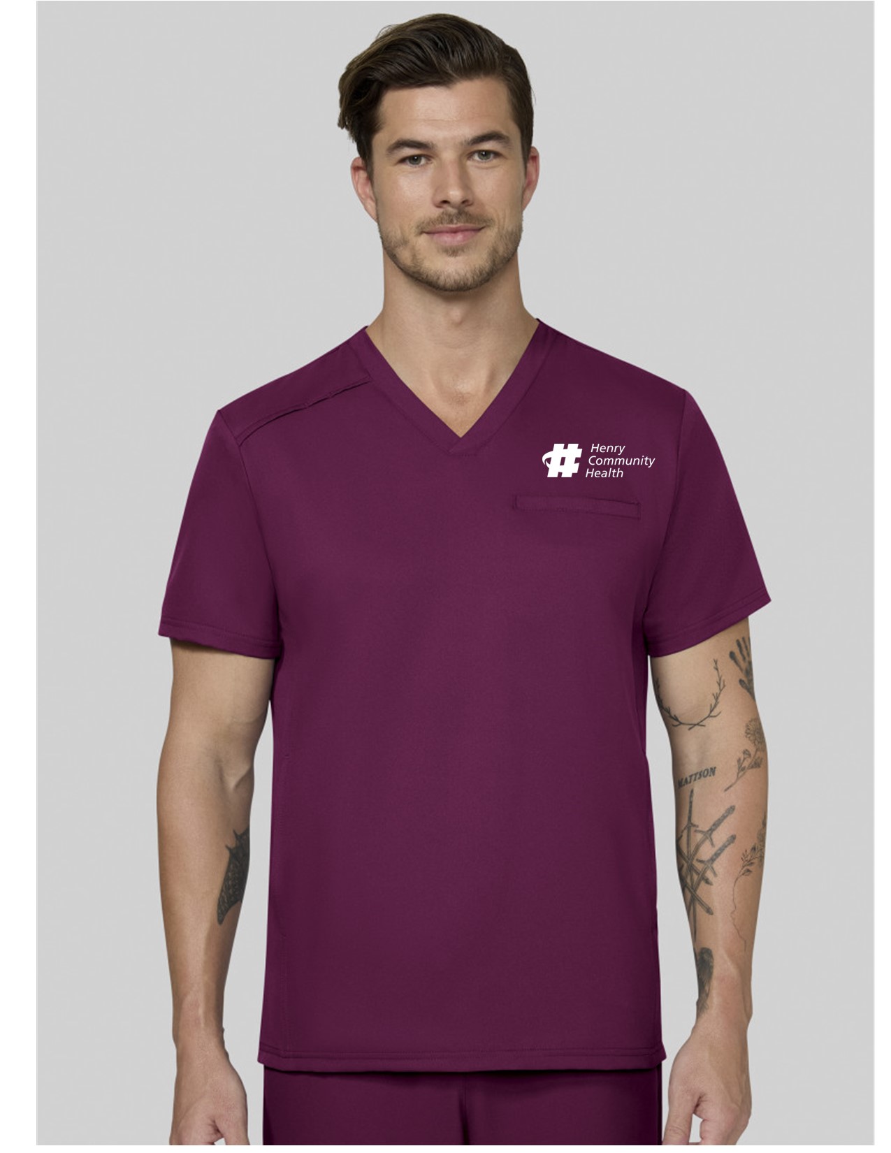 This everyday men’s top is the cure for the common scrub! Looks and feels amazing. Modern classic fit. Classic v-neck, Chest pocket, 2 side entry pockets, ID badge loop, Side slits, Looks great tucked in or out, Length Size M: 29 5/8″, 100% polyester stretch twill, Cureology Stasis Men’s 3-Pocket V-Neck Scrub Top