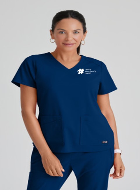 4 Pocket, V-Neck Top with angled seams 74% Polyester/23% Rayon/3% Spandex Twill