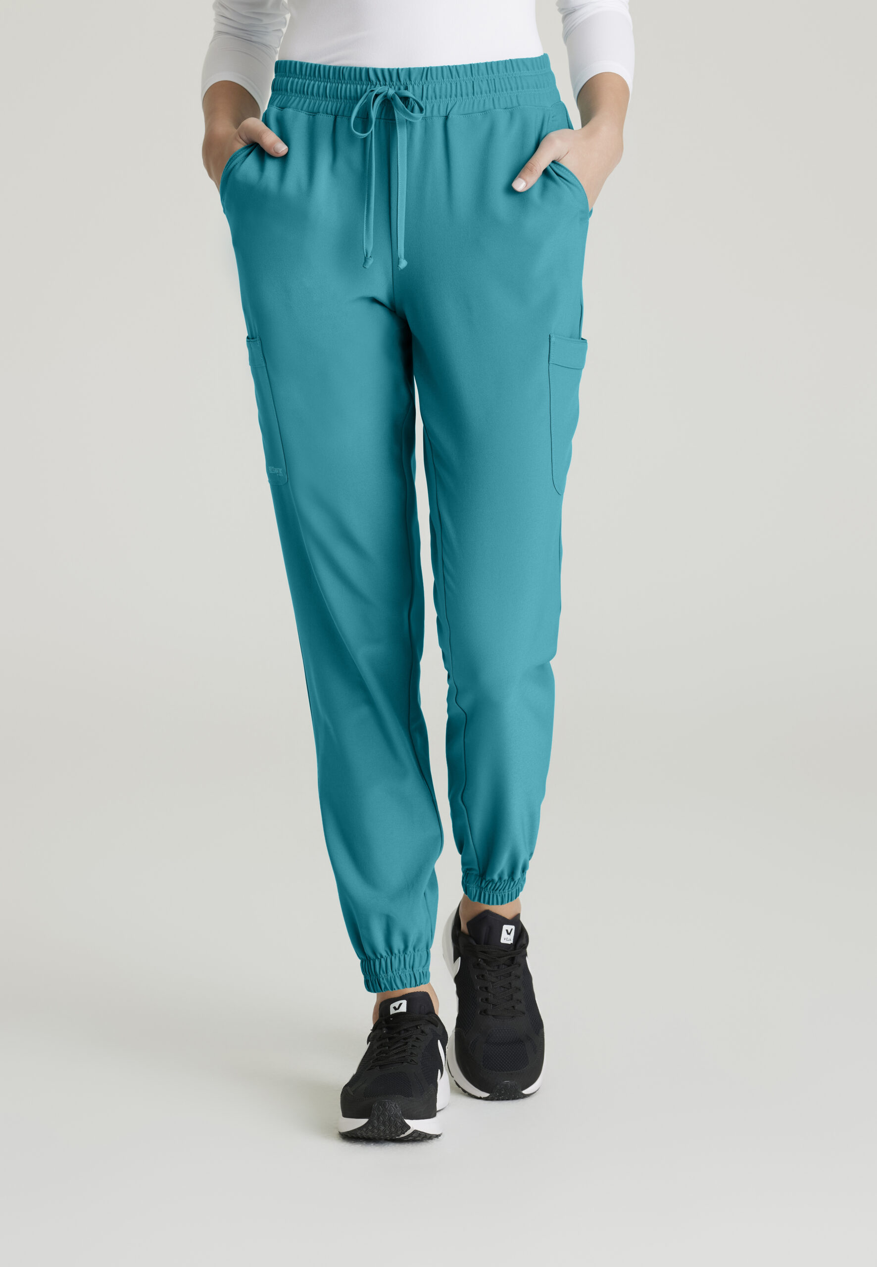 No matter where you are on your professional journey, the Terra Cargo Jogger from Grey’s Anatomy™ by Barco Evolve collection will support you every step of the way. These on-trend joggers will help you perform at your best with six convenient pockets and a comfortable elastic waistband. Made with recycled polyester and CiCLO® technology, the fabric is soft, stretchy, and breathable for all-day comfort. 6 pockets total, 2 front slash pockets with piped edge finish, 1 left cargo pocket, 2 back welt pockets, 1 right cargo pocket, Fit: Classic, Rise: Mid, Silhouette: Jogger, Covered elastic waistband with drawstring, Covered elastic ankle cuff, Inseams: Regular 29″ Petite 27″ Tall 31″ (small), 48% CiCLO® Polyester Material: 44% Recycled Polyester 8% Spandex, 360 stretch, Wrinkle release, Moisture wicking