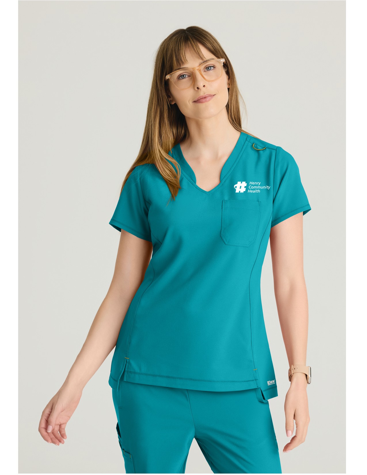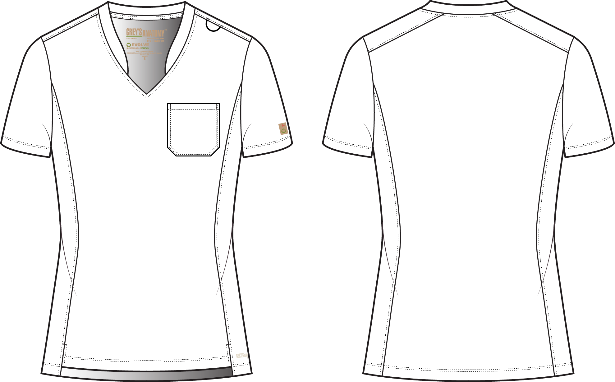 Set yourself up for success with the Sway Top from Grey’s Anatomy™ by Barco Evolve collection. The clean design features a modern banded v-neck that complements the high-low step hem, while princess seams provide a flattering fit. Plus, the signature green loop offers a convenient place for your badge. Made with recycled polyester and CiCLO® technology, the fabric is soft, stretchy, and breathable for all-day comfort. 1 left chest patch pocket, Fit: Classic, Tuck-in or out, Banded modified V-neck, Evolve green bungee ID loop left shoulder, Front and back princess seams, Double needle and cover stitch detail throughout, Front vents, Angled back shoulder yoke, High-low shirttail hem, Centerback length 25.5″ (small), 48% CiCLO® Polyester Material: 44% Recycled Polyester 8% Spandex, 360 stretch, Wrinkle release, Moisture wicking