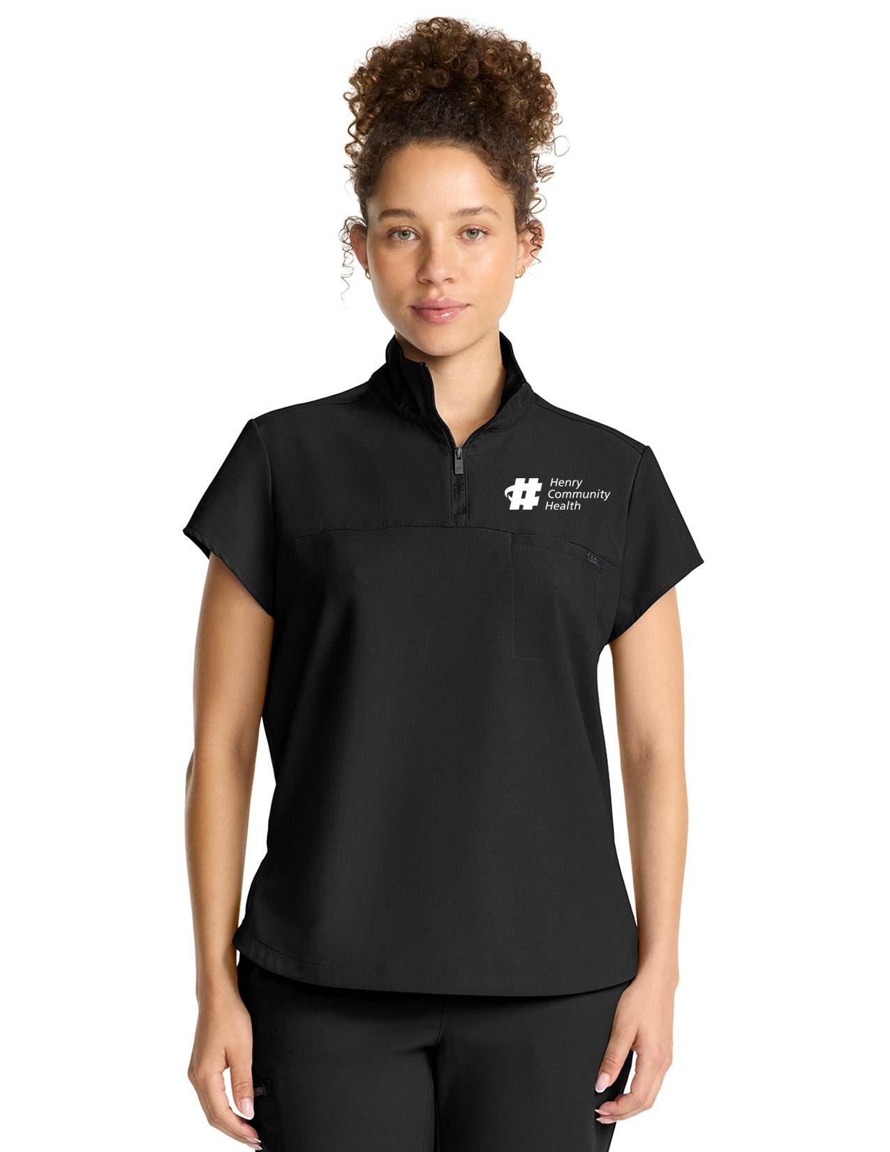 The Bella scrub top has style to spare starting with a stand-up collar and quarter zip opening with logo zipper pull. There is one welt chest pocket with a pretty printed pocket bag plus front chest seam and a curved back yoke. This scrub top is finished with an updated shirttail hem and side vents. The soft four-way stretch fabric includes moisture wicking for added comfort. Modern fit. Center back length (size Small): 25″