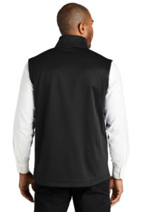 A smooth face brushed back and coverstitching make this warm fleece vest a classier alternative to more casual fleece. Can be zipped in and secured by snap attachment inside an outer Collective layer 5.9-ounce 100% polyester fleece Dyed-to-match and contrast coverstitch Slightly longer length Molded center front zipper Front reverse-coil zippered pockets