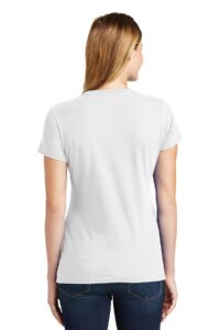 You’ll be the biggest fan around of this 100% ring spun cotton tee. 4.5-ounce 100% ring spun cotton 30 singles 90/10 cotton/poly (Athletic Heather) 50/50 cotton/poly (Dark Heather Grey) Ladies fashion fit Removable tag for comfort and relabeling