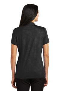 Tough enough to conquer moisture snags and color bleed this smooth polo also features a subtle allover embossed geometric pattern. 4.7-ounce 100% polyester jersey with PosiCharge technology and embossed pattern Self-fabric collar Tag-free label 1-button Y-placket with dyed-to-match rubber button Set-in open hem sleevesIf applying sublimation special care must be taken throughout the process. Contact your decorator for more details.