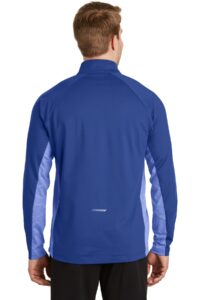 By mixing heather with a solid color and adding reflective hits this moisture-wicking pullover has a technical look plus plenty of stretch for easy movement. 6.8-ounce 90/10 poly/spandex jersey Soft-brushed backing Tag-free label Reflective details on right sleeve and lower back Cadet collar Reverse coil zipper Raglan sleeves Open cuffs and hem