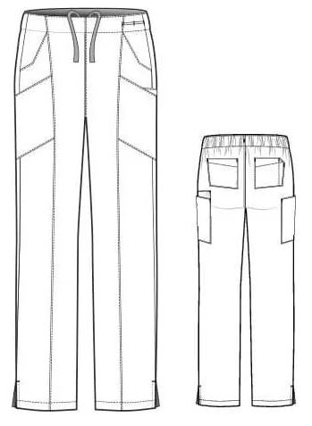 Missy fit, Mid rise, Straight leg, Flat front full elastic waistband with interior webbed drawstring tie, Signature utility loop at waist, Two front slanted pockets, Two back patch pockets with pen slot, Two stylized cargo pockets at legs with cell phone pocket, Front vertical seaming, Side vents at hem, 100% polyester 4-way stretch, moisture wicking microfiber, Easy care, Avoids fading and shrinkage, Total inseam about: 30½” in regular, 28½” in petite.