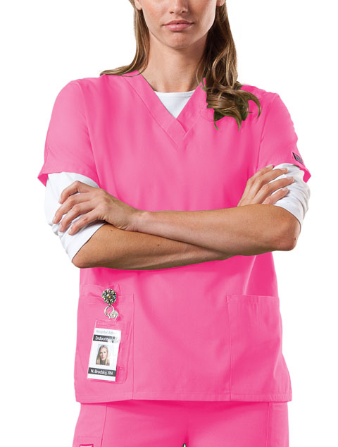 65% Polyester / 35% Cotton Poplin With Soil Release A Traditional Classic fit, dolman sleeve, V-neck top with side seam vents, two patch pockets and a cell phone pocket. Center back length: 26 1/2″. *This top runs big!*