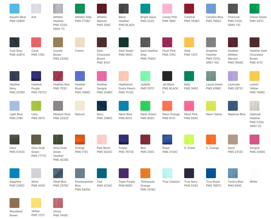 An indispensable t-shirt in our classic silhouettewith a very friendly price.5.4-ounce 100% cotton98/2 cotton/poly (Ash)90/10 cotton/poly (Athletic Heather)50/50 cotton/poly (Black Heather Dark Heather Grey Graphite Heather Heather Athletic Maroon Heather Dark Chocolate Brown Heather Navy Heather Purple Heather Red Heather Royal Heather Sangria Heathered Dusty Peach Neon Blue Neon Green Neon Orange Neon Pink Neon Yellow Oatmeal Heather Olive Drab Green Heather S. Green S. Orange)Removable tag for comfort and relabelingDue to the nature of 50/50 cotton/polyester neon fabrics special care must be taken throughout the printing process.