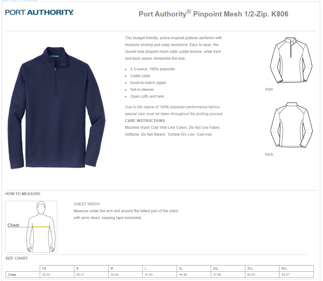 This budget-friendly active-inspired pullover performs with moisture wicking and snag resistance. Easy to layer the closed-hole pinpoint mesh adds subtle texture while front and back seams streamline the look. 4.3-ounce 100% polyester Cadet collar Dyed-to-match zipper Set-in sleeves Open cuffs and hemDue to the nature of 100% polyester performance fabrics special care must be taken throughout the printing process.