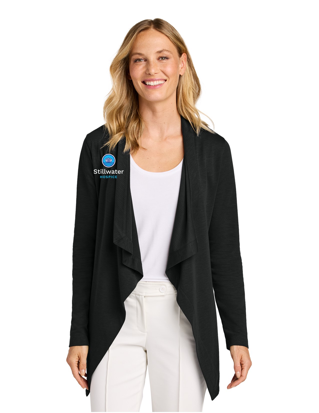 This crowd-pleasing cardigan, with its subtle slub texture, offers a carefree layering option for the office or any casual setting. 6.3-ounce, 60/40 cotton/polyester, Open front, Shawl collar with waterfall lapels, Set-in sleeves, Side seam pockets, Elastic at back waist for subtle shaping, Self-turned cuffs and hem