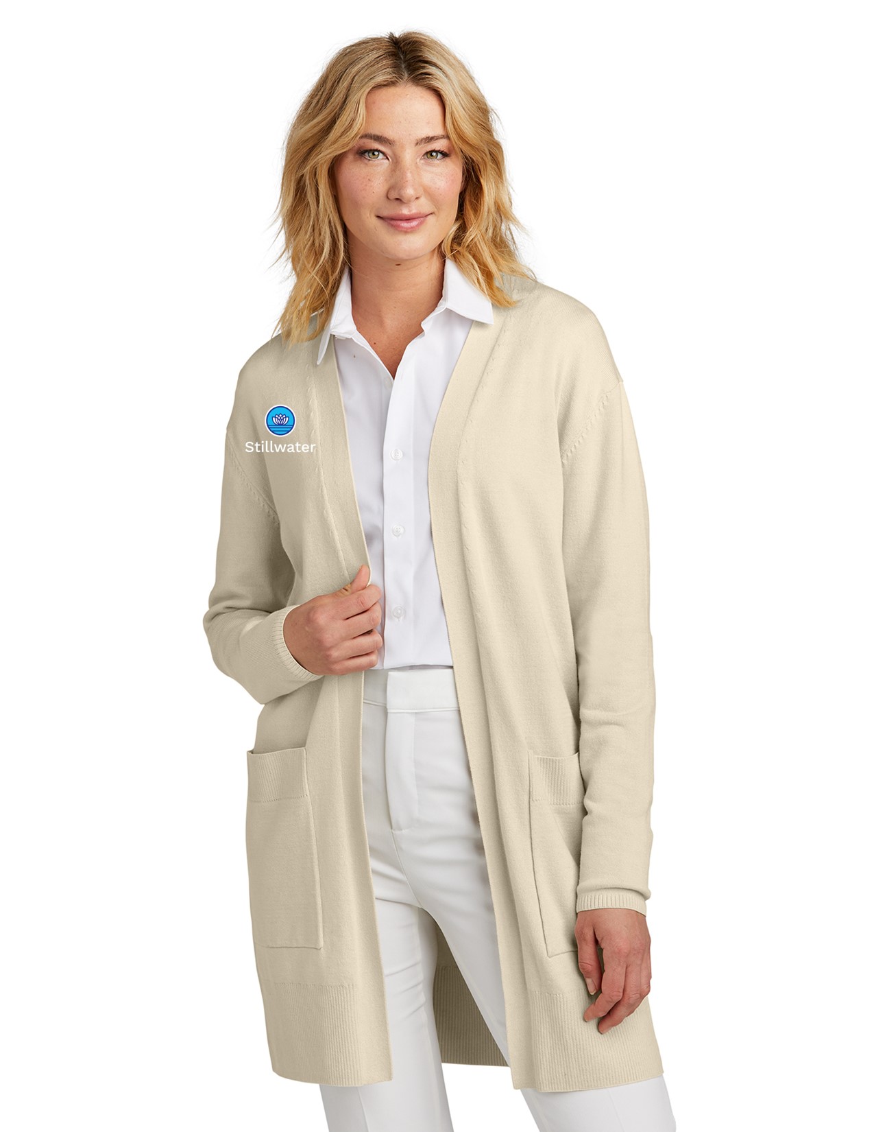 Soft, comfortable, and as a transitional layer for day or night, this easy care sweater is a refined knit that won’t bag out with wear. Sophisticated details like square patch pockets and a wide, rib bottom hem lend a modern sensibility to accent your unique sense of style. 90/9/1 cotton/nylon/spandex, Fully-fashioned armholes, Square patch pockets, Wide, rib bottom hem