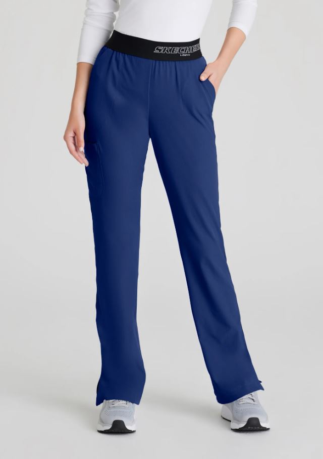 Our caregivers agree that the Skechers Breeze 3-Pocket Logo Waist Pants give you an amazing mix of style, comfort and functionality! These sporty, modern fit, performance pants have four-way stretch fabric that is perfect to meet the demands of healthcare professionals. The elastic waist helps to ensure a great fit throughout the day. 3 pockets: 2 front pockets and a cargo pocket with a pen slot , Sporty mid-rise elastic waistband, Double needle stitch detail, Side slits